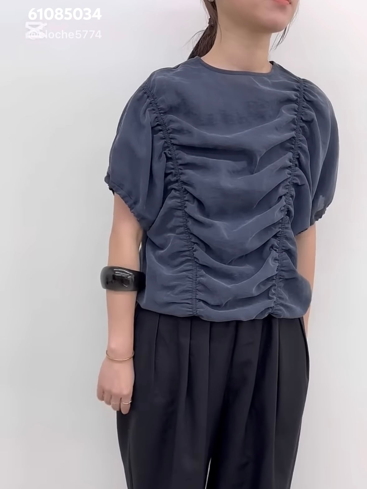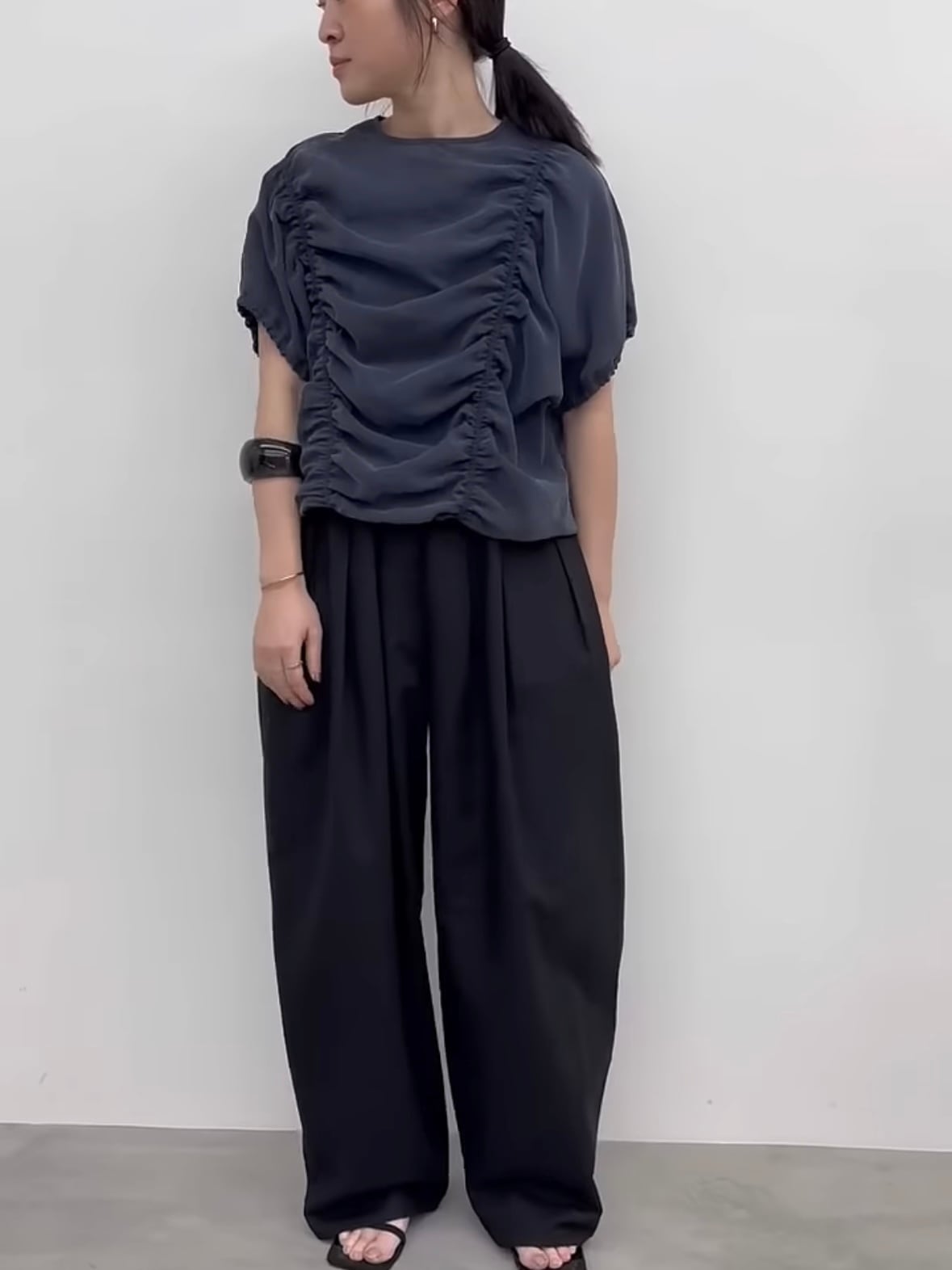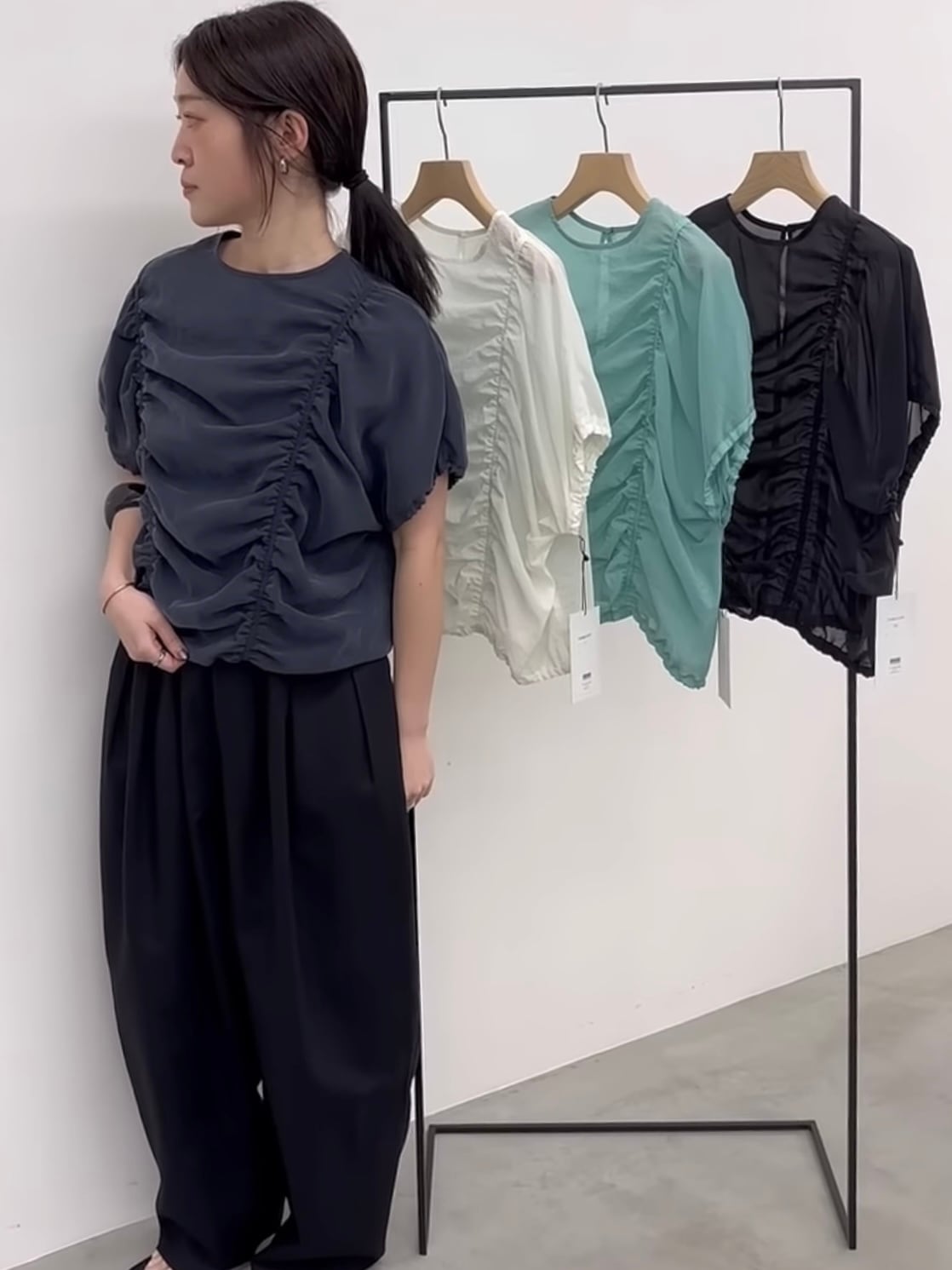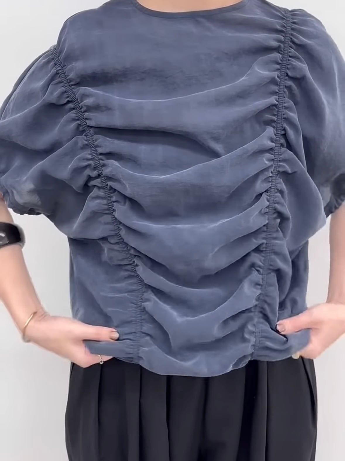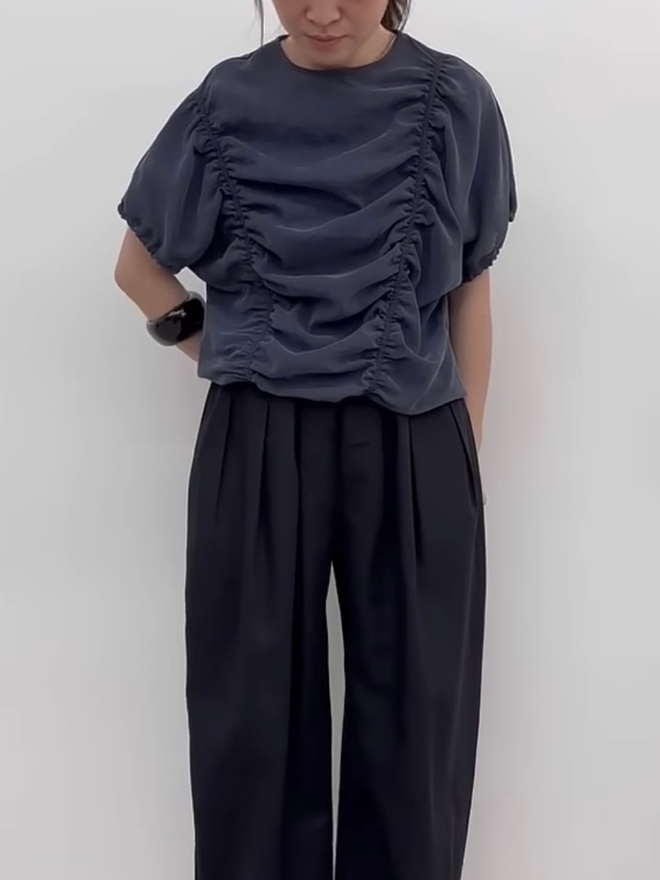 身頃部分に入れたシャーリングデザインがポイントです