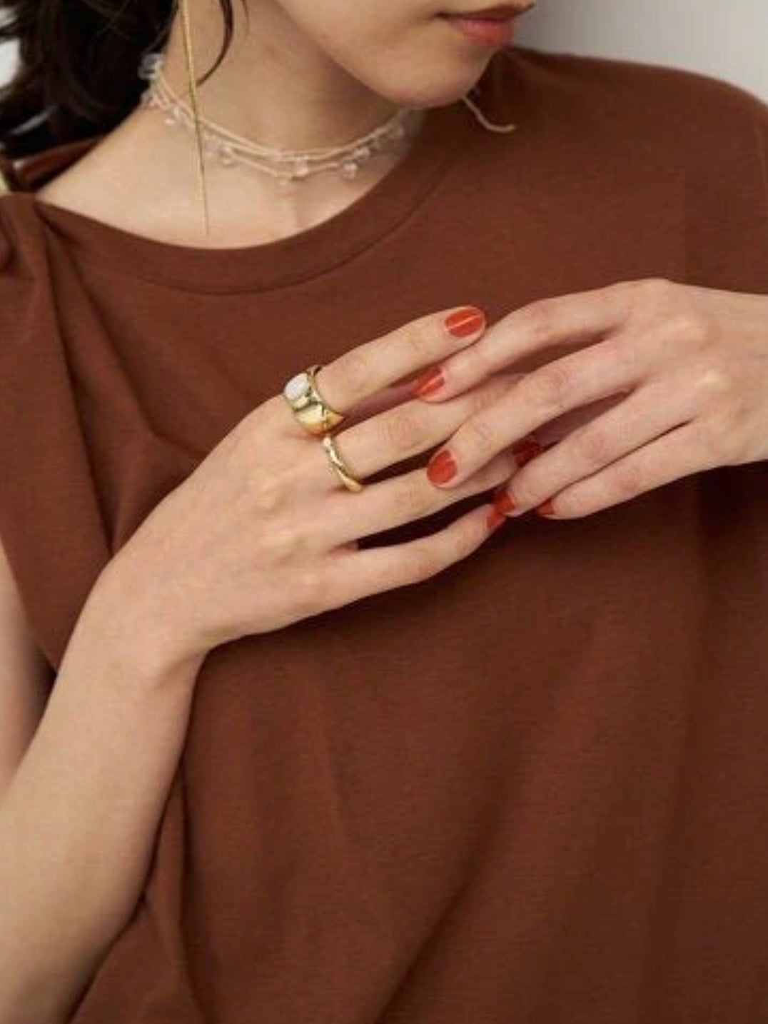 独特な光沢を放つマザーオブパールを施した2本のデザインリングは、力強い女性らしさとモード感が漂う2WAYタイプ仕様に仕上げております。