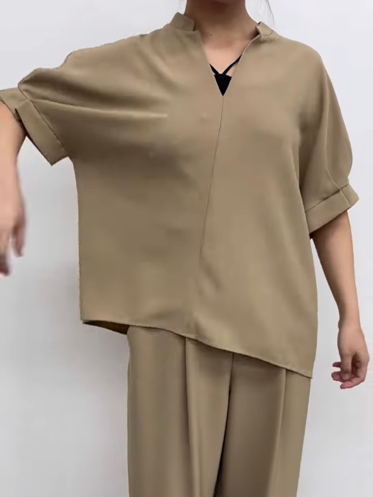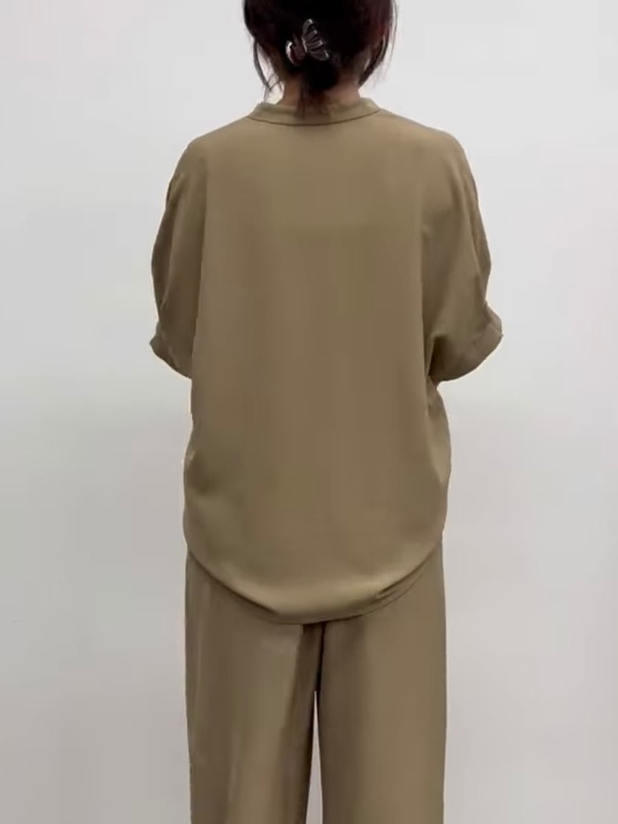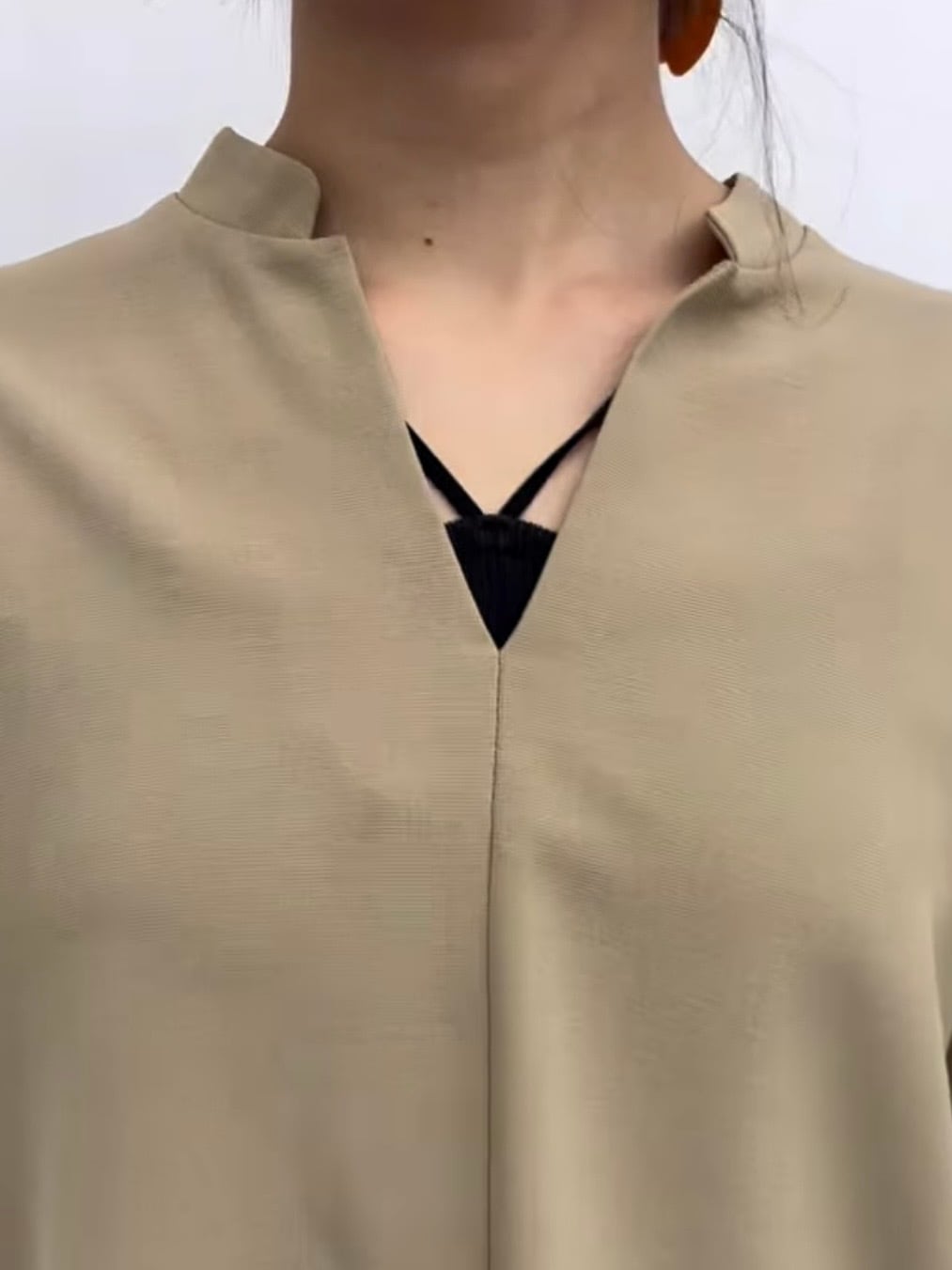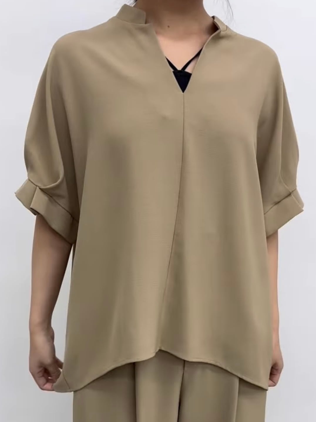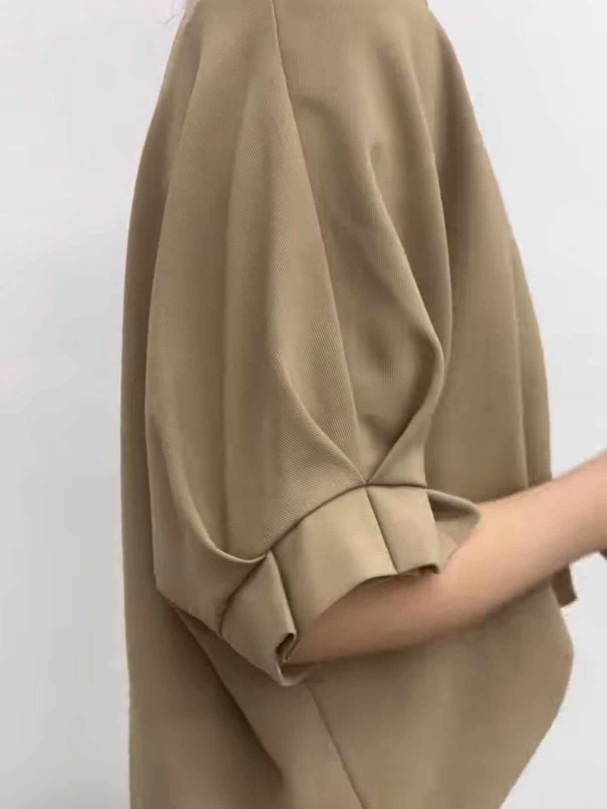 落ち感のある滑らかな素材が女性らしい柔らかさをだしてくれ、しっかり袖があるので気になる二の腕をカバーしてくれます
