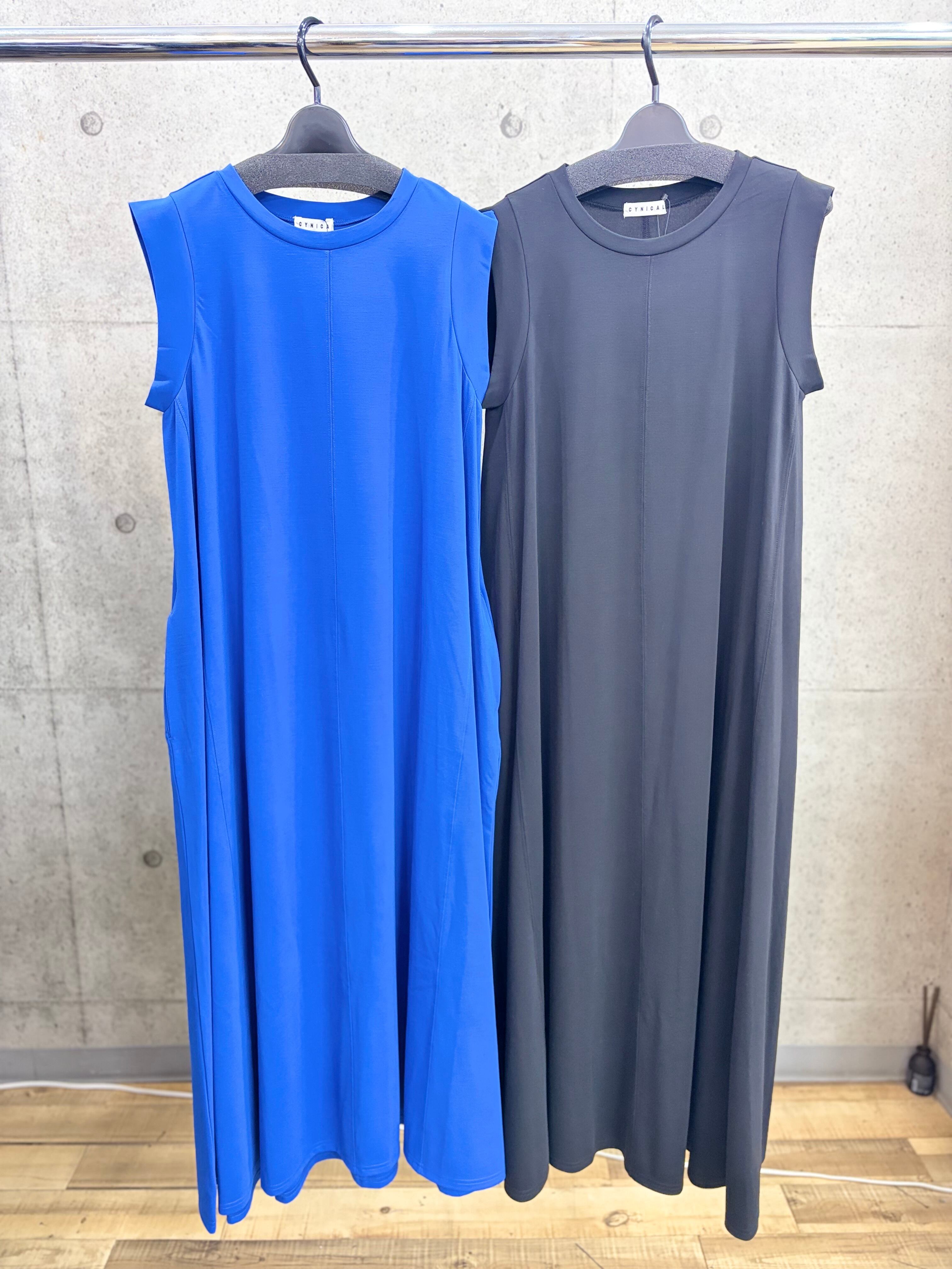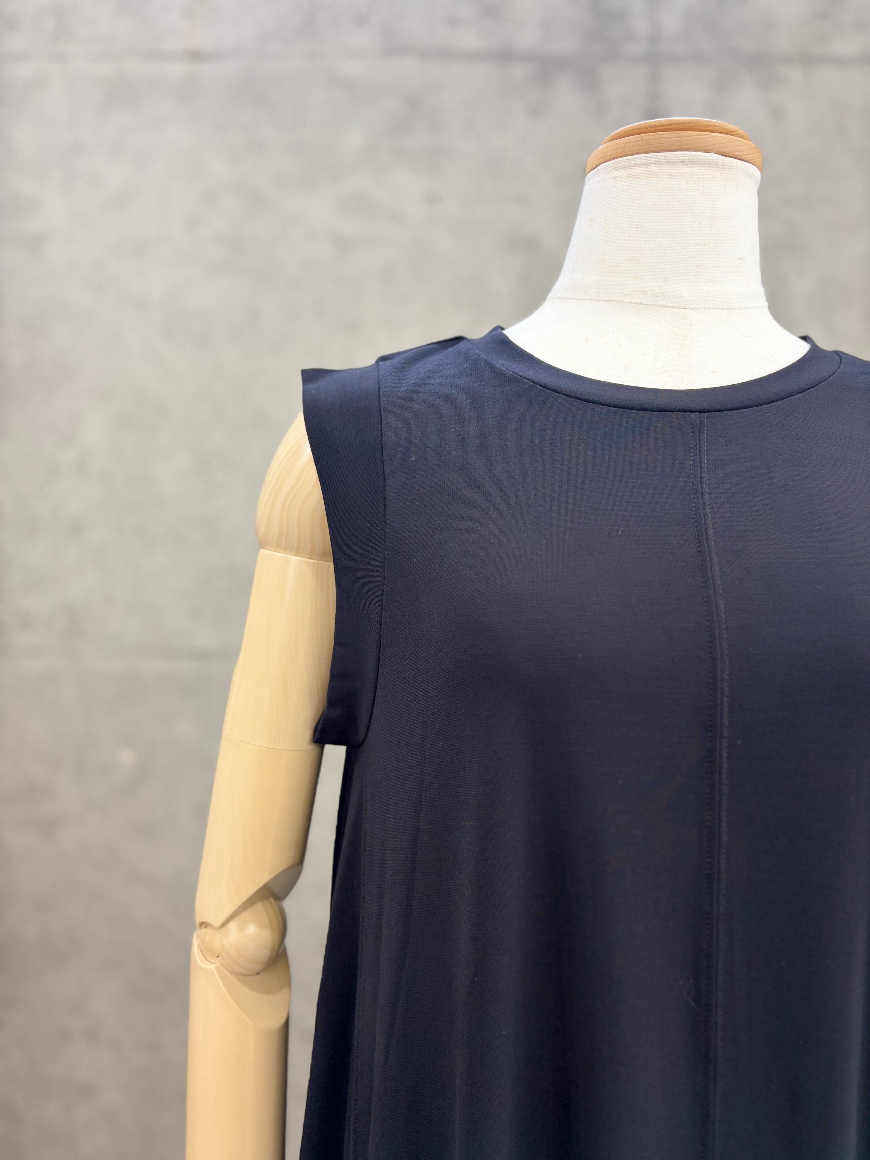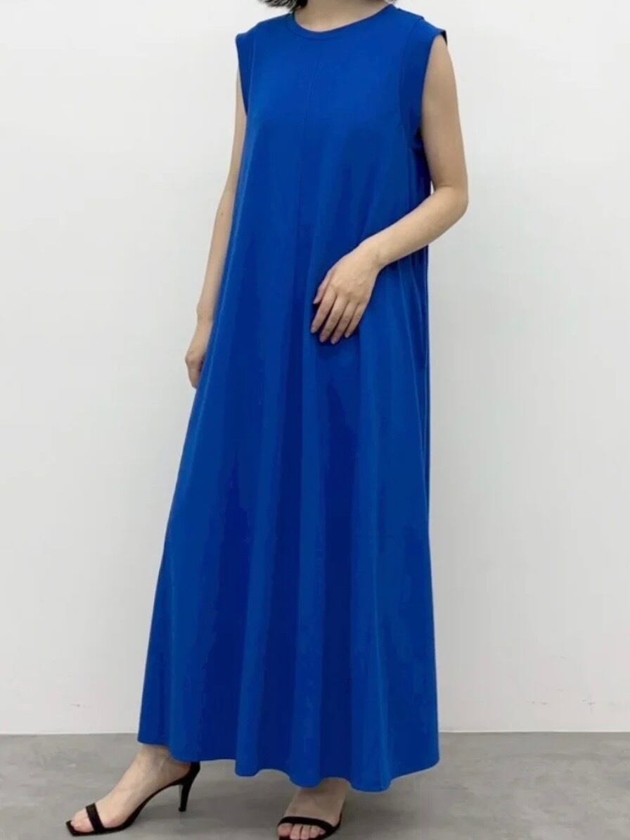 生地の表面がなめらかで、肌触りの良い生地を使用したノースリーブワンピです