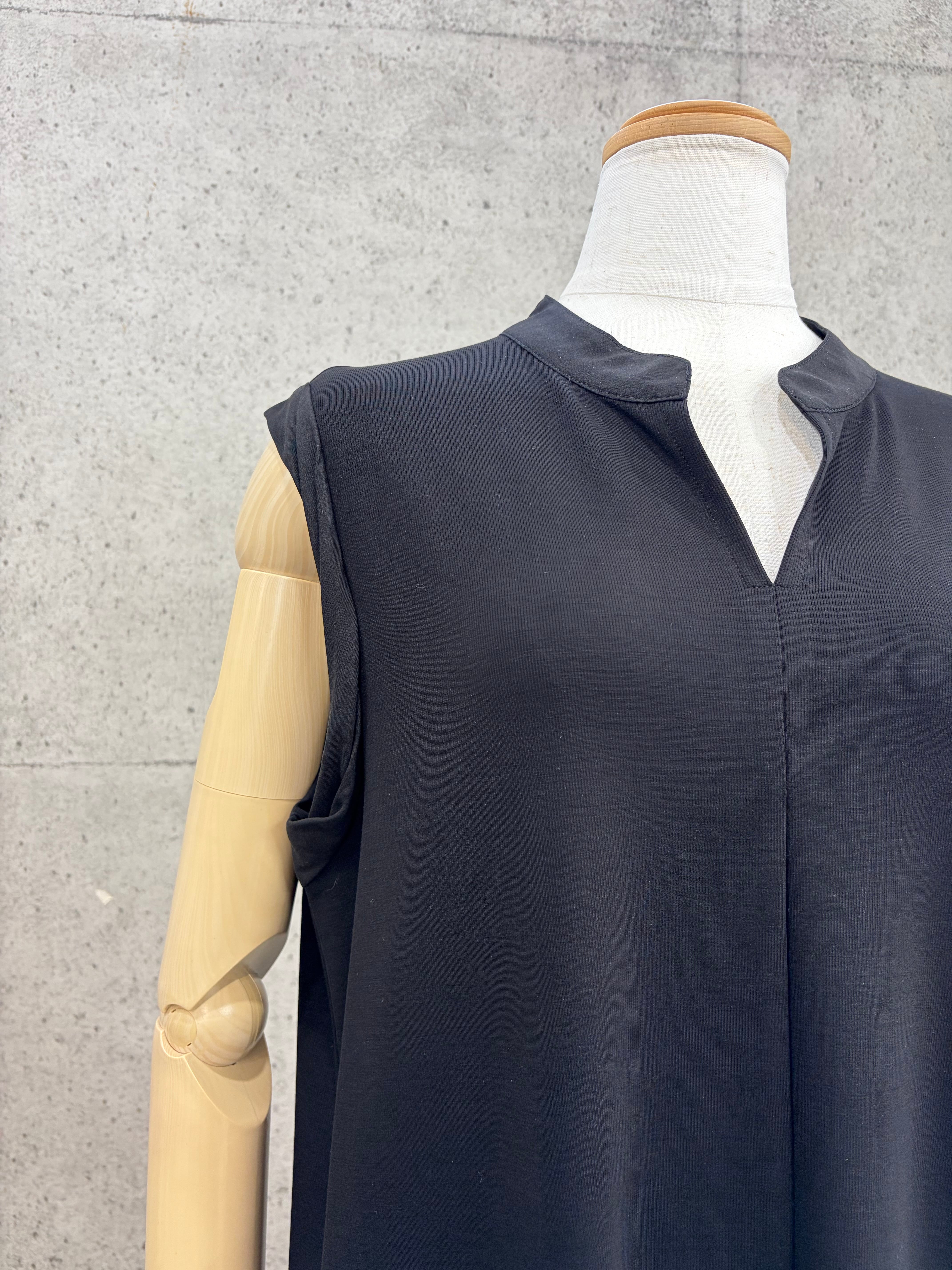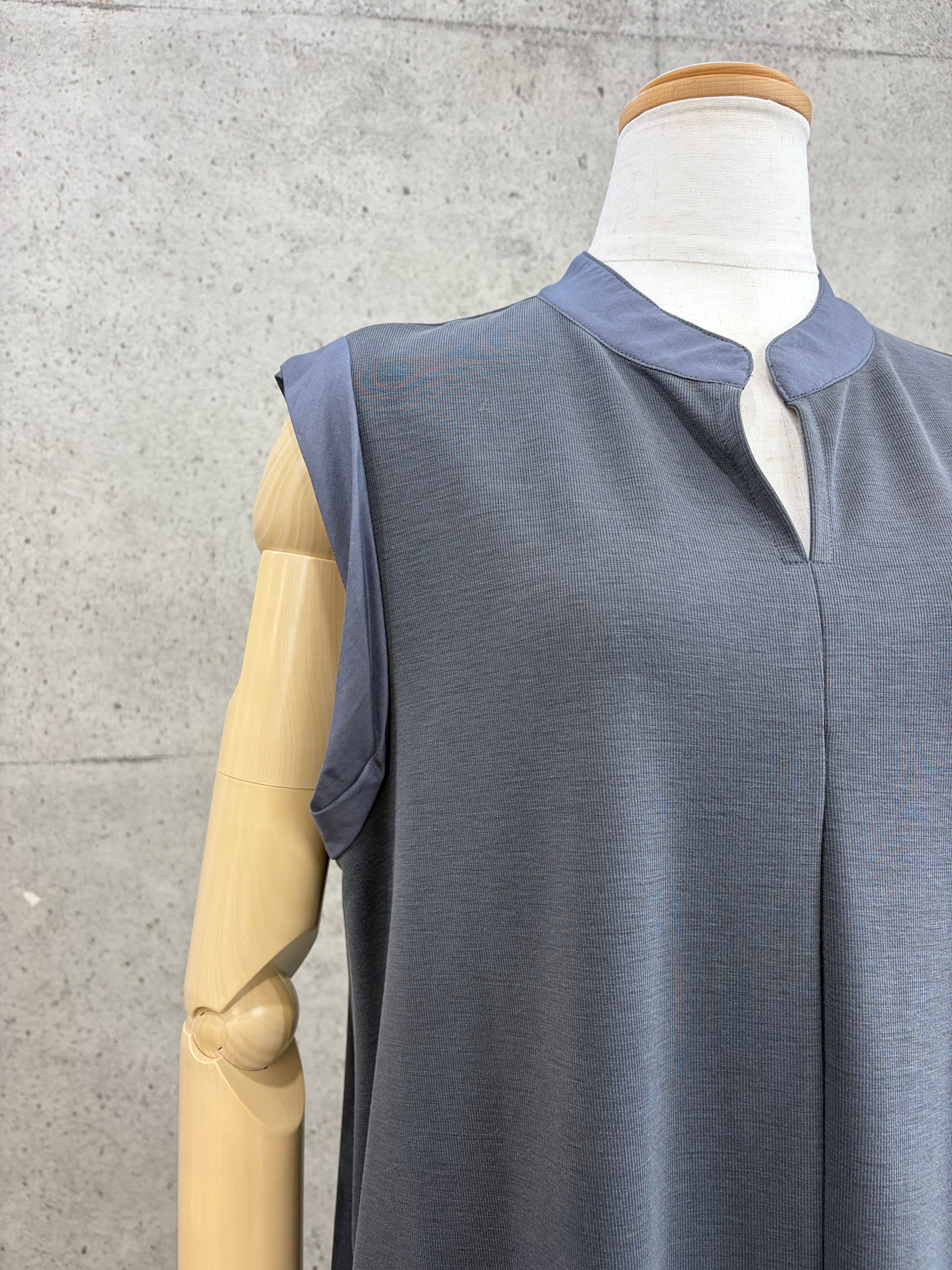 生地の表面がなめらかで、肌触りの良い生地を使用したノースリーブワンピです
