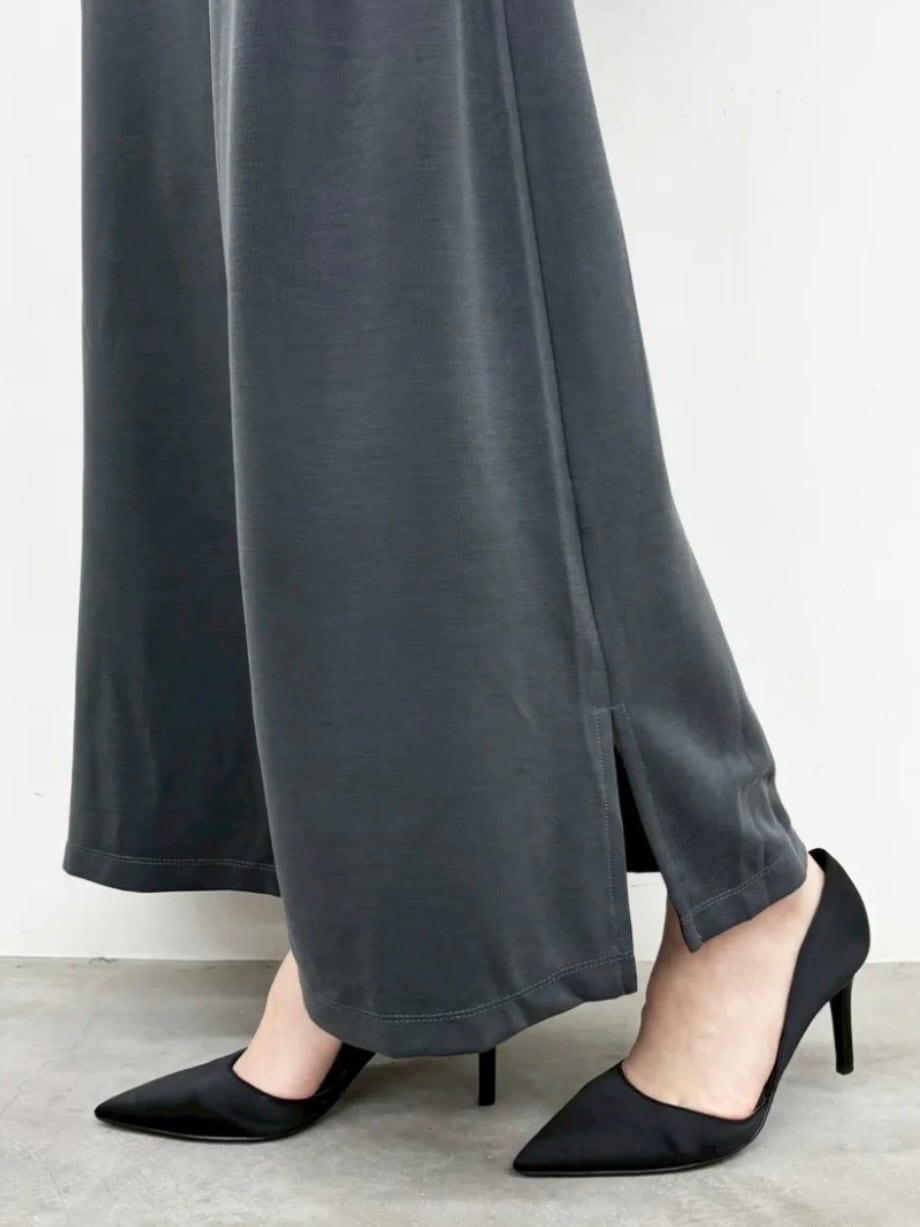ゆとりのあるワイドな身幅ながら縦に入る縫い目がスッキリとみせてくれます