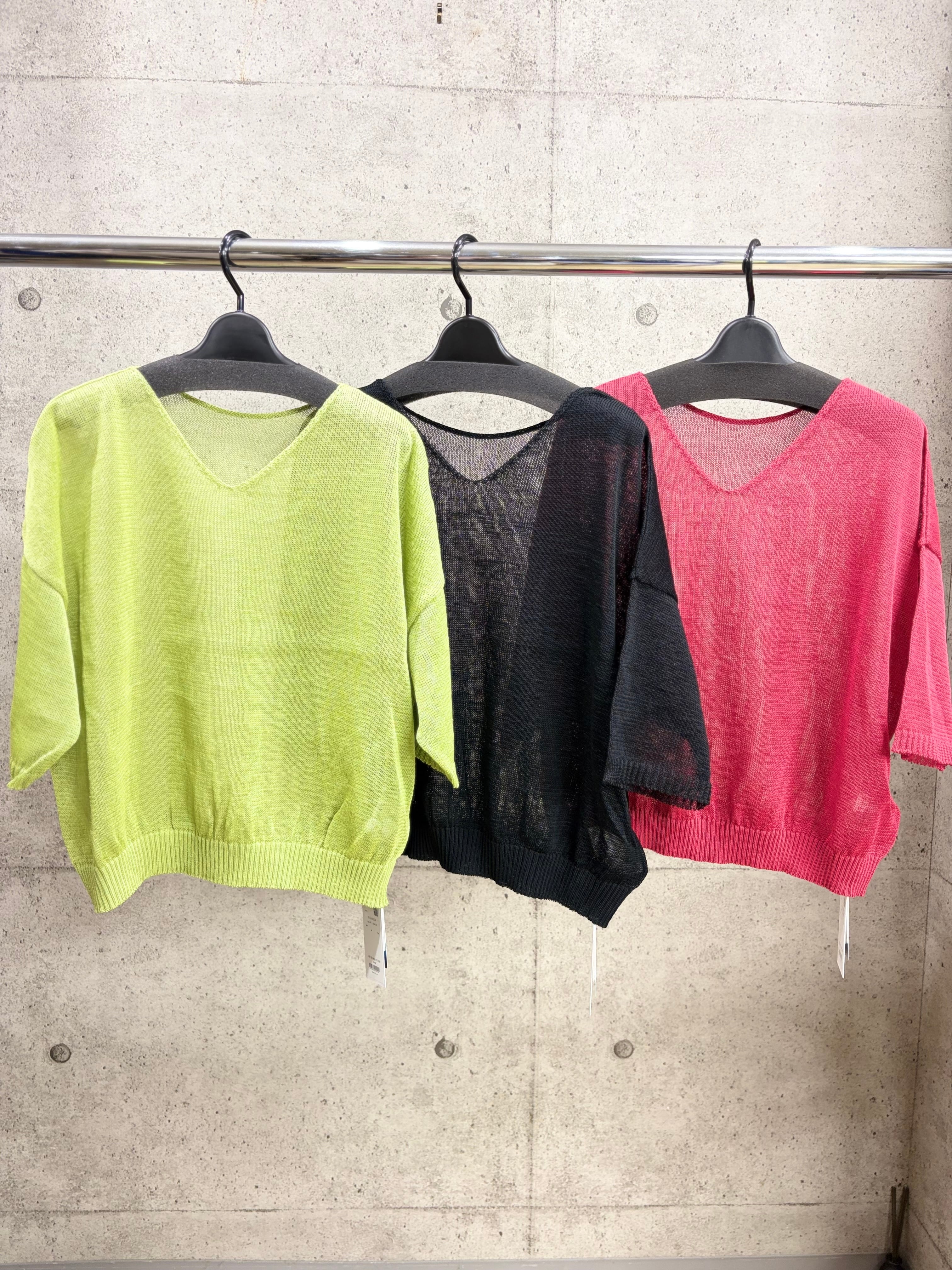 深めのVネックとゆるっとしたフォルムで、肌見せもヘルシーに