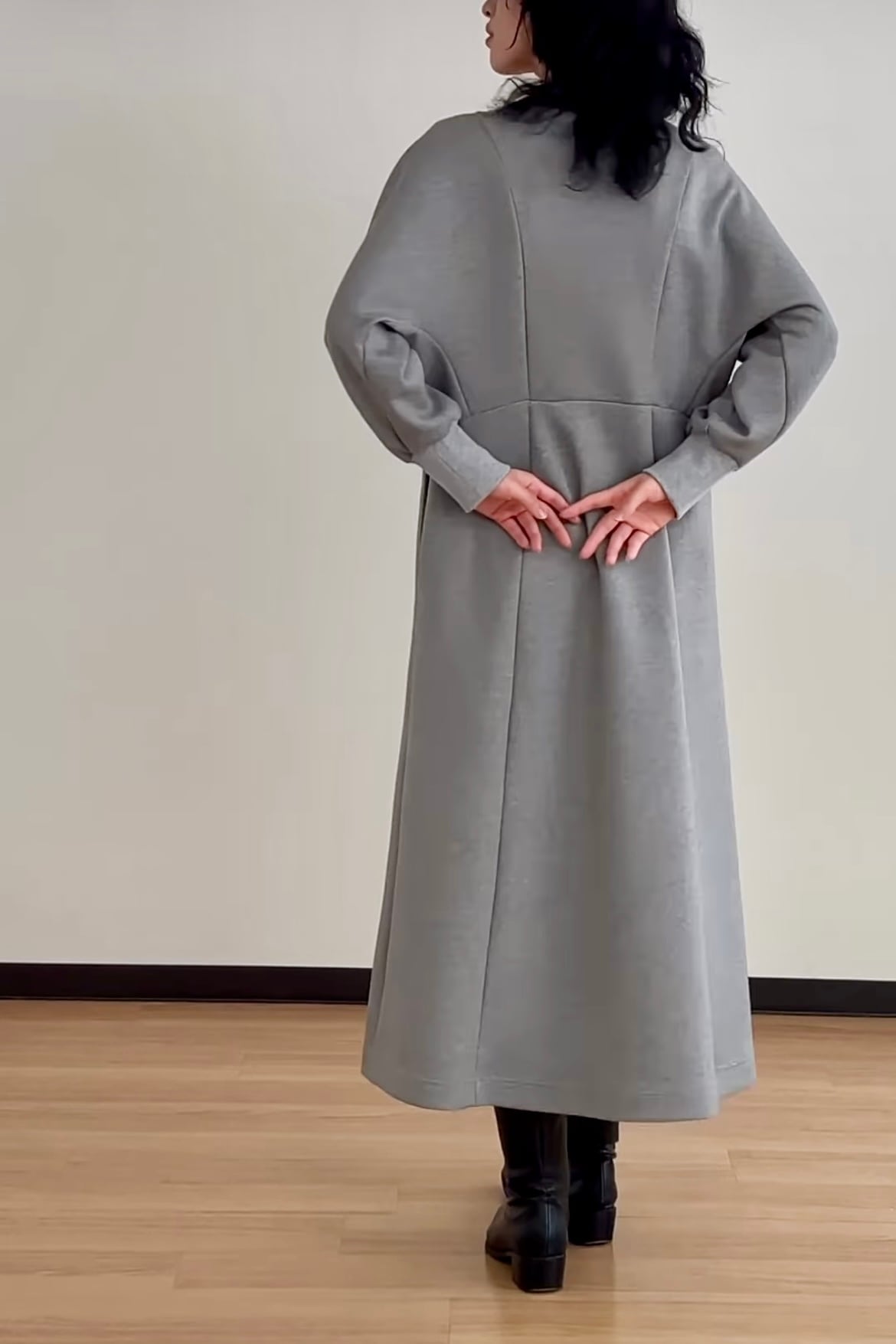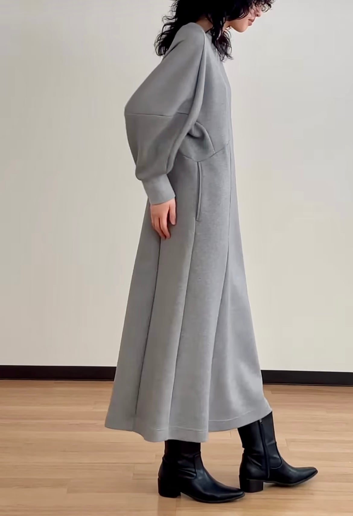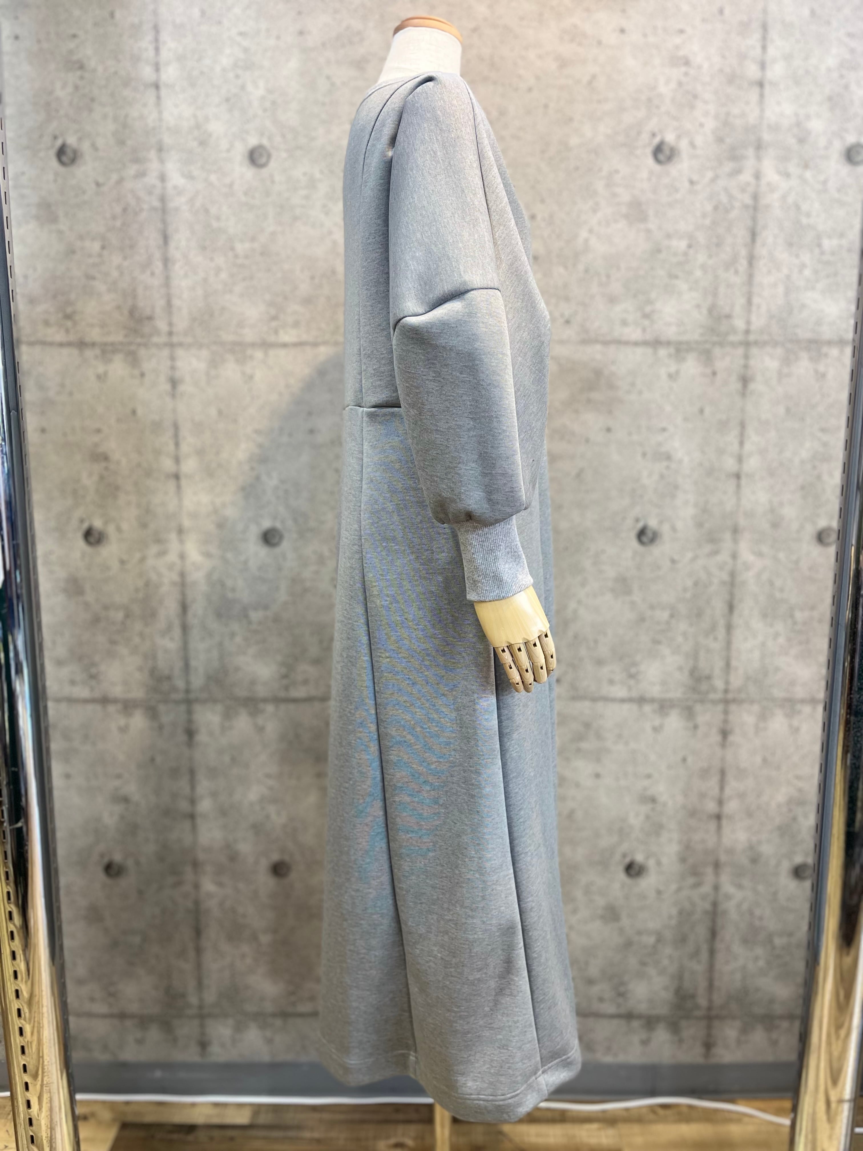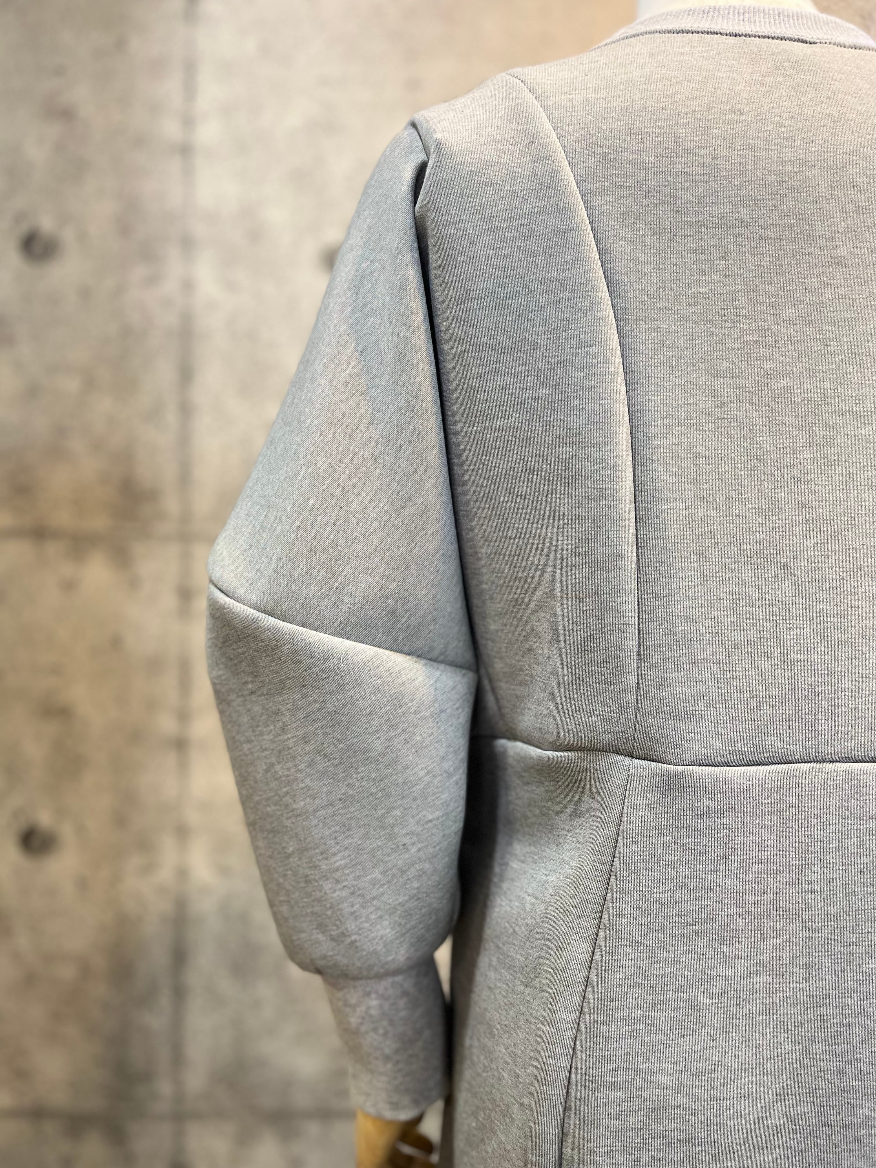 程よいハリ感のダンボールニット生地にAラインなシルエット。